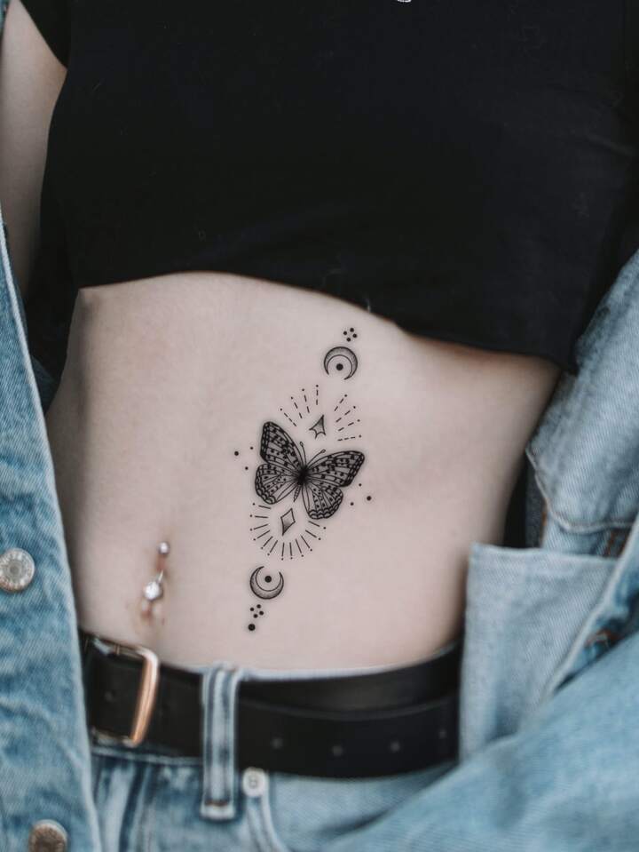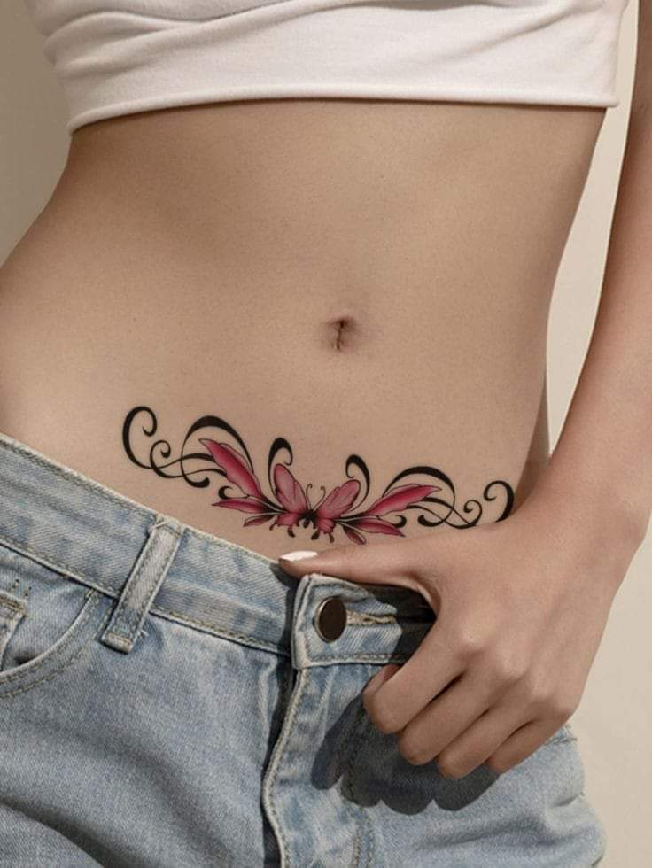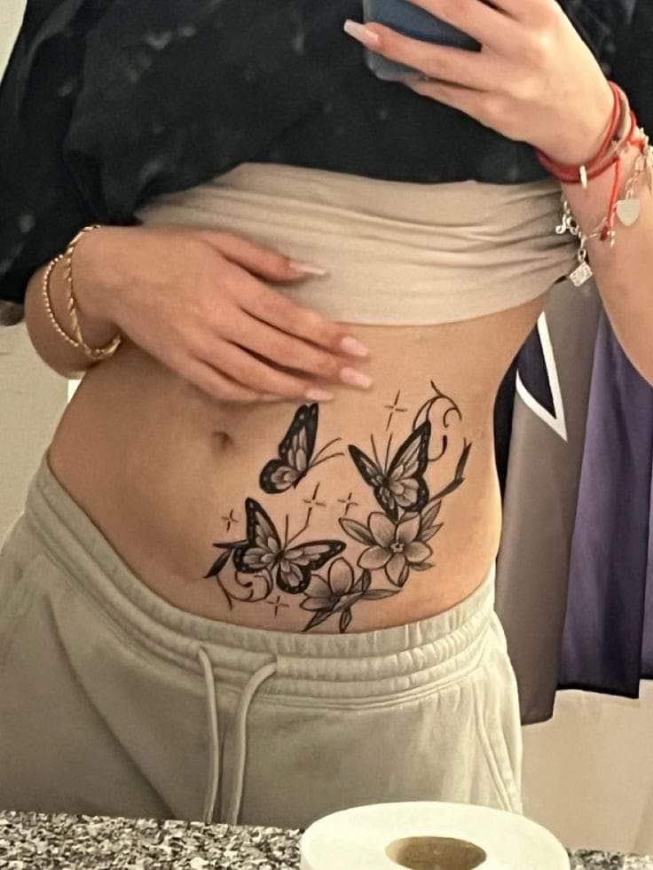 Uno de los diseños más populares en el abdomen de las mujeres es el de las mariposas.